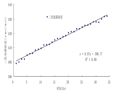 圖a RR-7330 測量系統測量閉路箱內CO2累積過程及線性關系(中國農業大學,韓廣魯,2010)